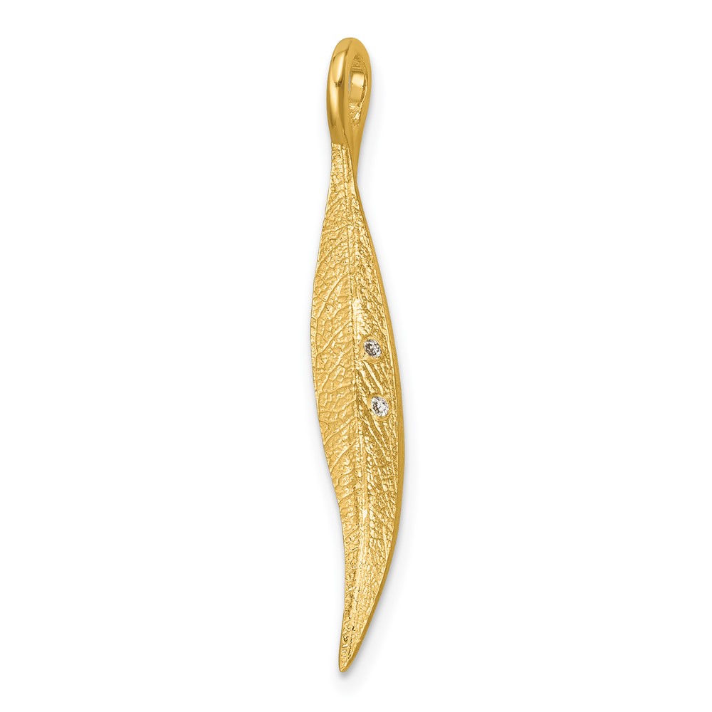 Herco 14K Polished and Textured Diamond Small Leaf Pendant