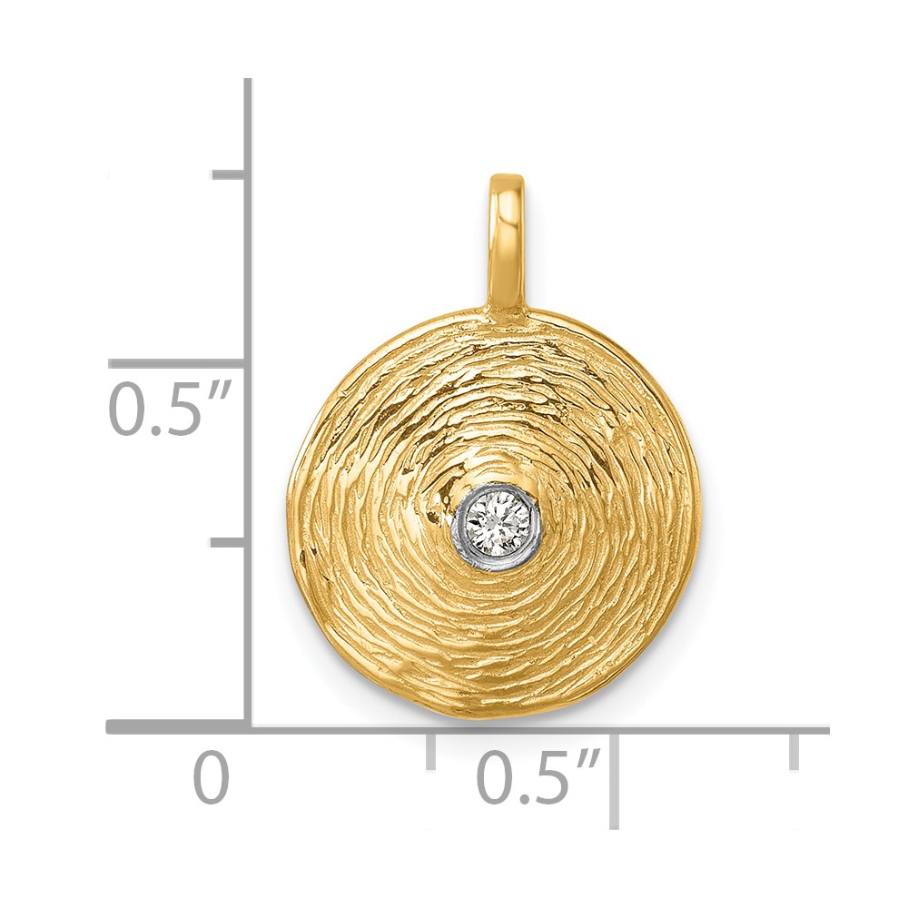 Herco 14K Polished and Textured Diamond Circle Pendant