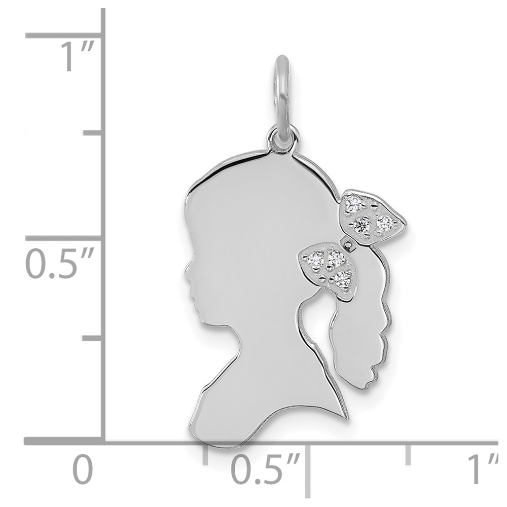 14k White Gold Girls Silhouette with Diamond Bow Charm