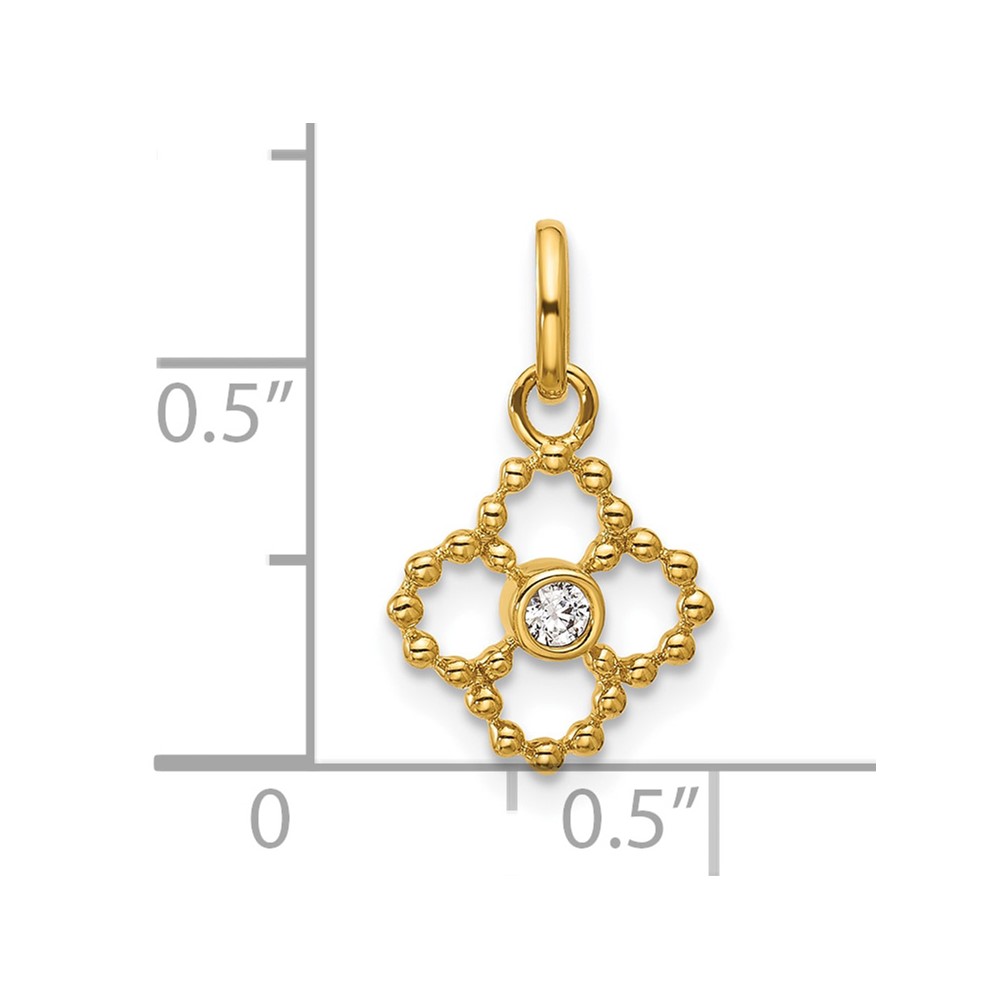 14K Polished 1/20 carat Diamond Beaded Floral Pendant