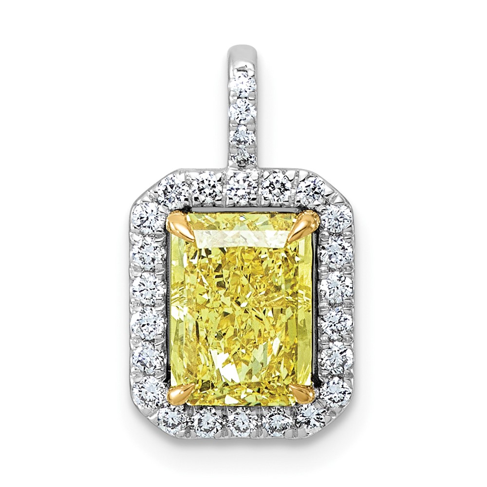 Emma Grace 14K Two-Tone 2 1/4 carat Certified Lab Grown Diamond VS+ Emerald Vivid Yellow Center VS+ F+ Halo Complete Pendant