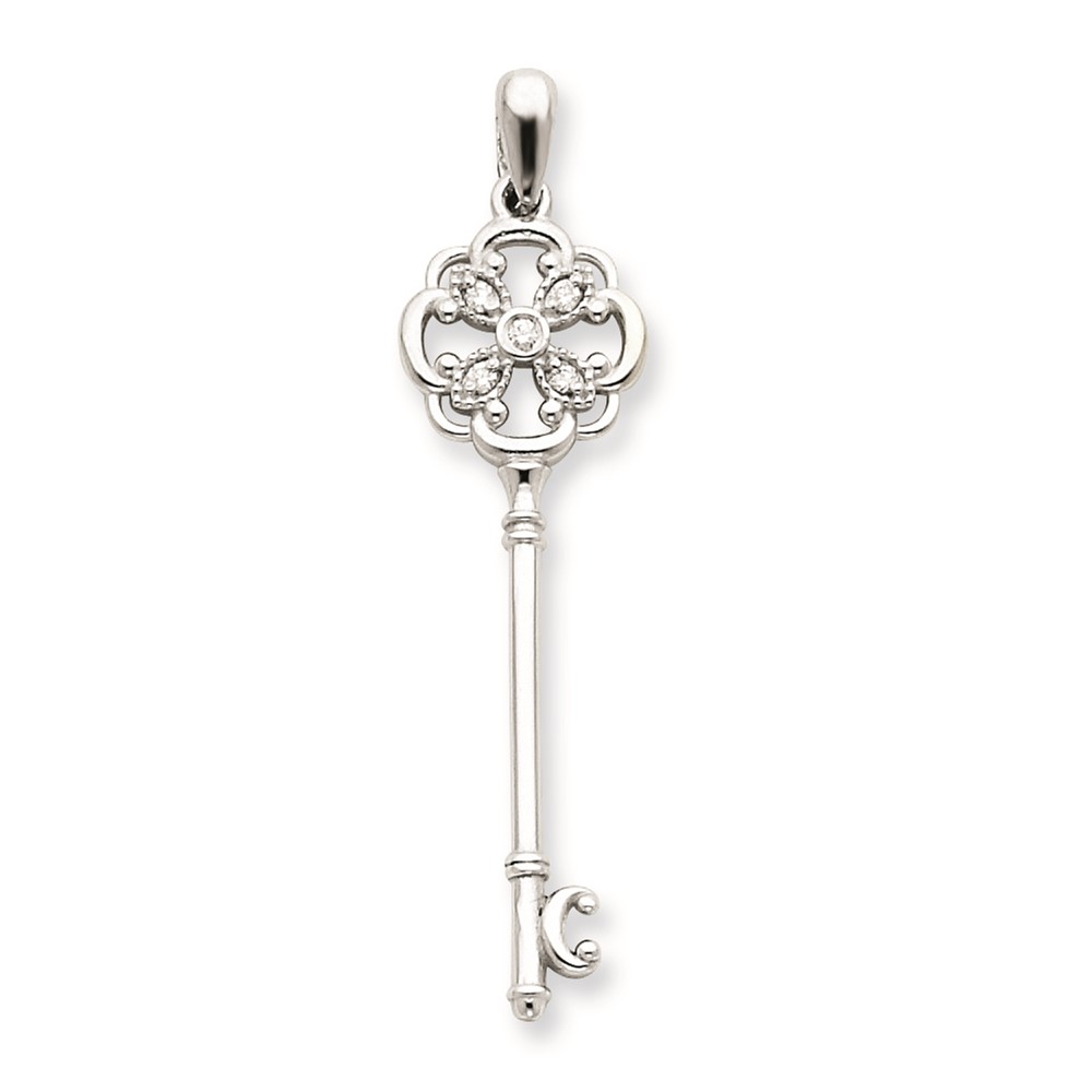 14K White Gold AA Diamond Key Pendant
