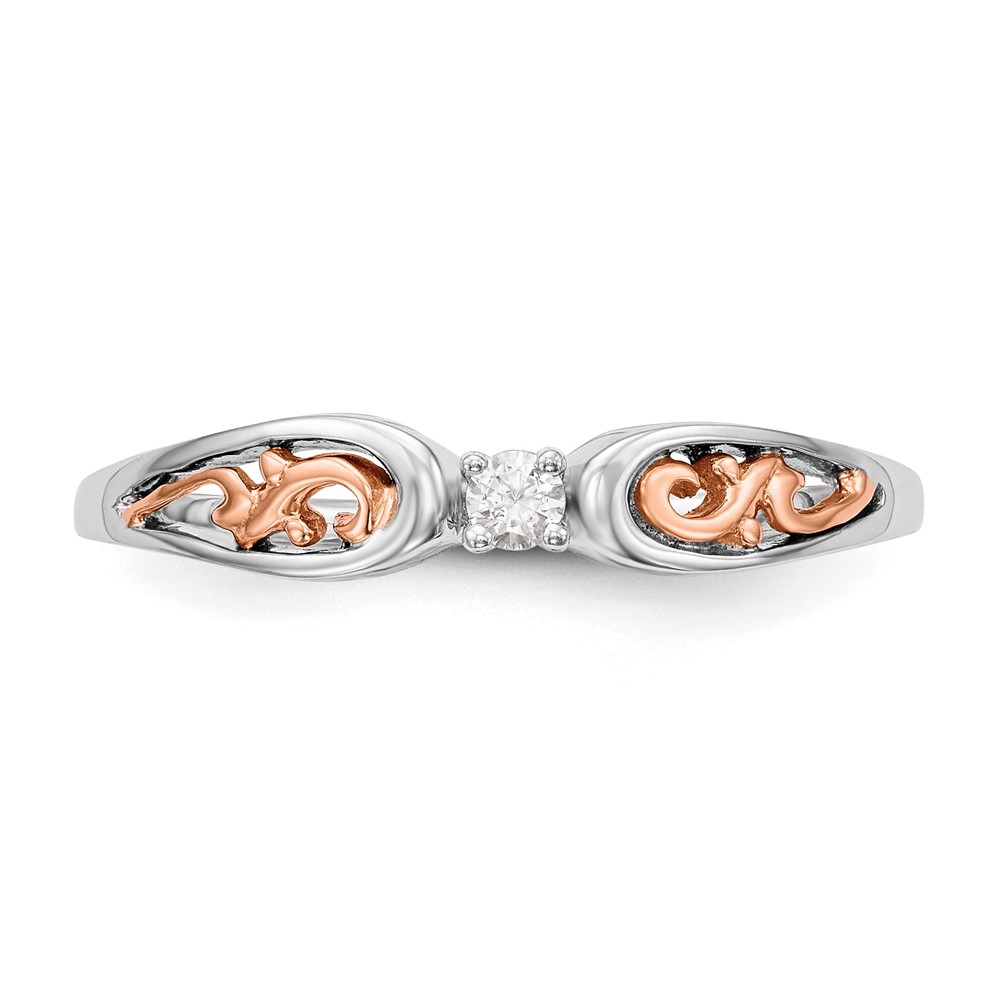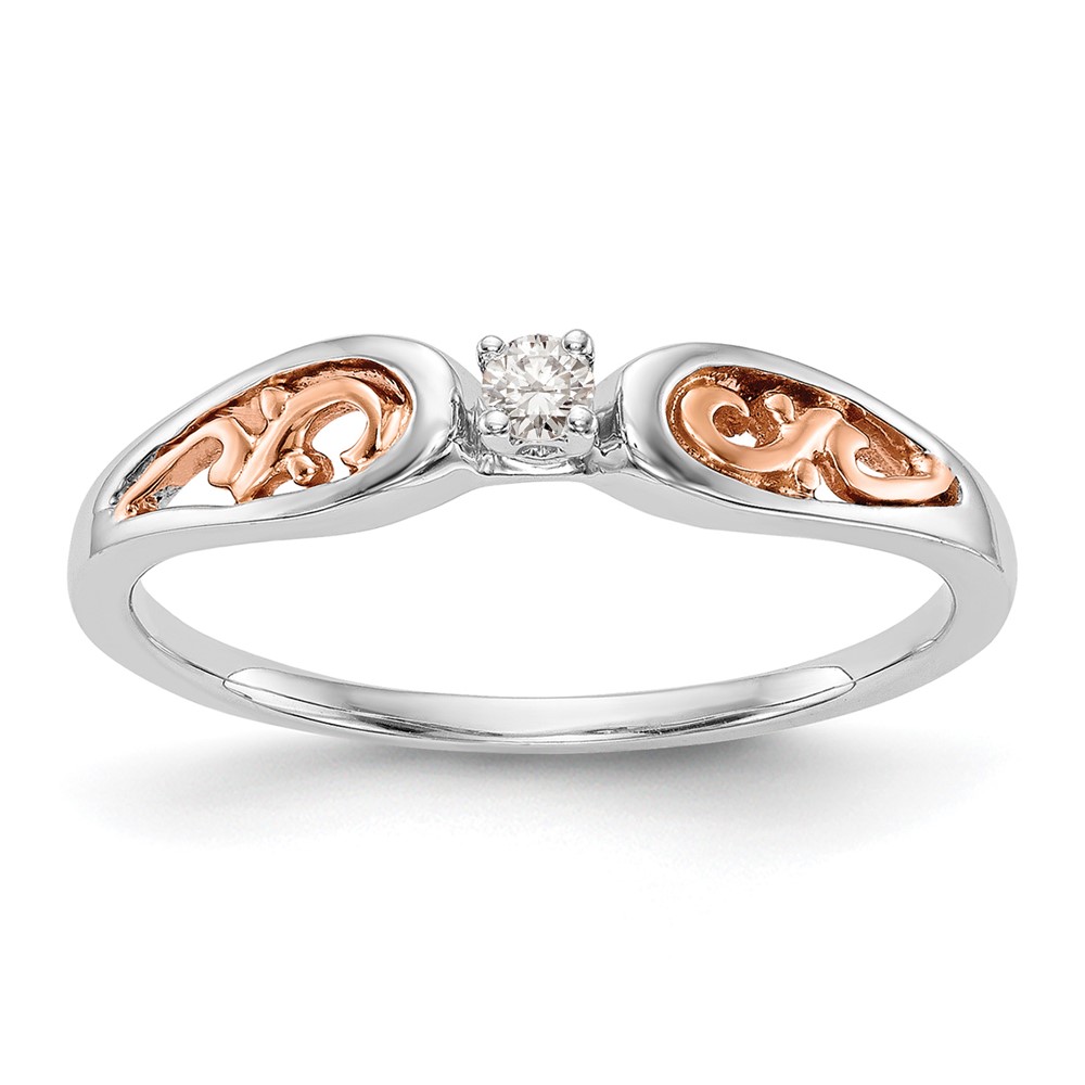 First Promise 14k White and Rose Gold Filigree 1/20 carat Round Diamond Complete Promise/Engagement Ring