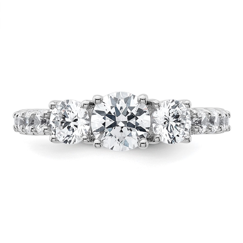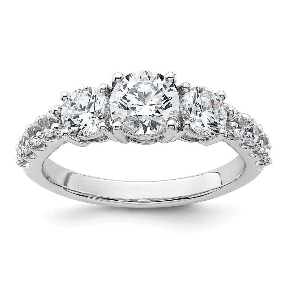 14k White Gold 2 carat Lab Grown Diamond VS+ F+ Round Complete Three Stone Engagement Ring