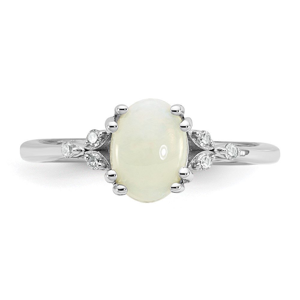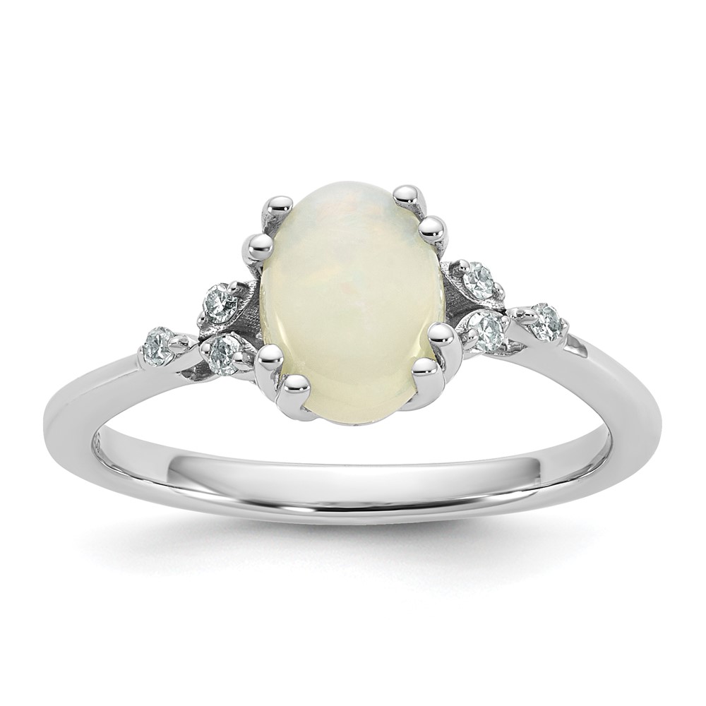 Sterling Silver 8x6 Oval Opal and Diamond Ring Rd 6-1.3mm Mel:S43