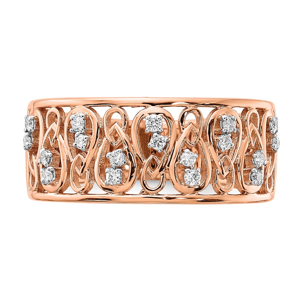 14k Rose Gold Polished 1/6 carat Diamond Fancy Filigree Band