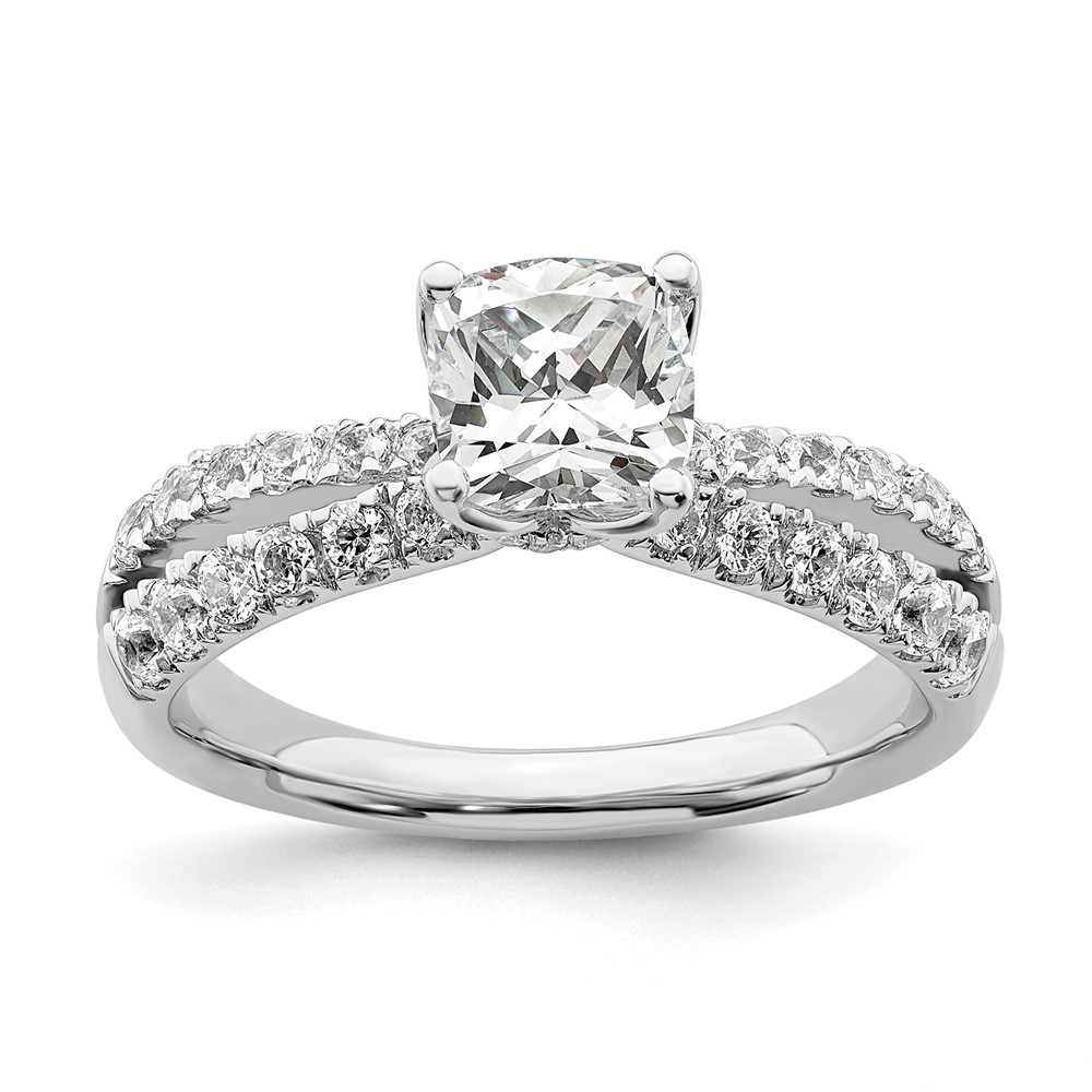 14k White Gold 5/8 carat Lab Grown Diamond VS/SI+ G+ 1 carat Center Cushion Semi Mount Engagement Ring
