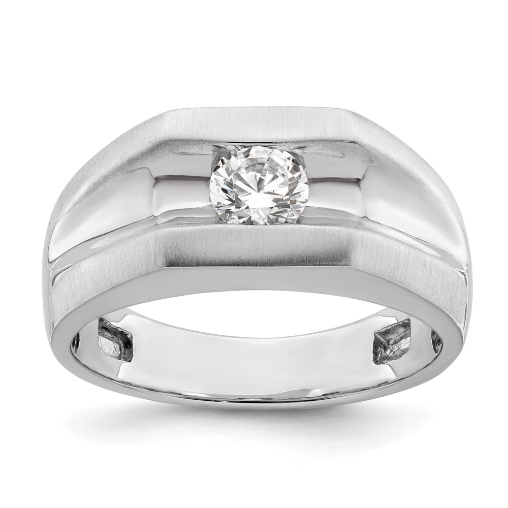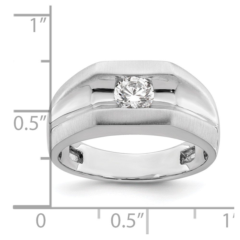 14K White Gold Polished (Holds 1/2 carat (5.0mm) Round) Men's Ring Mounting