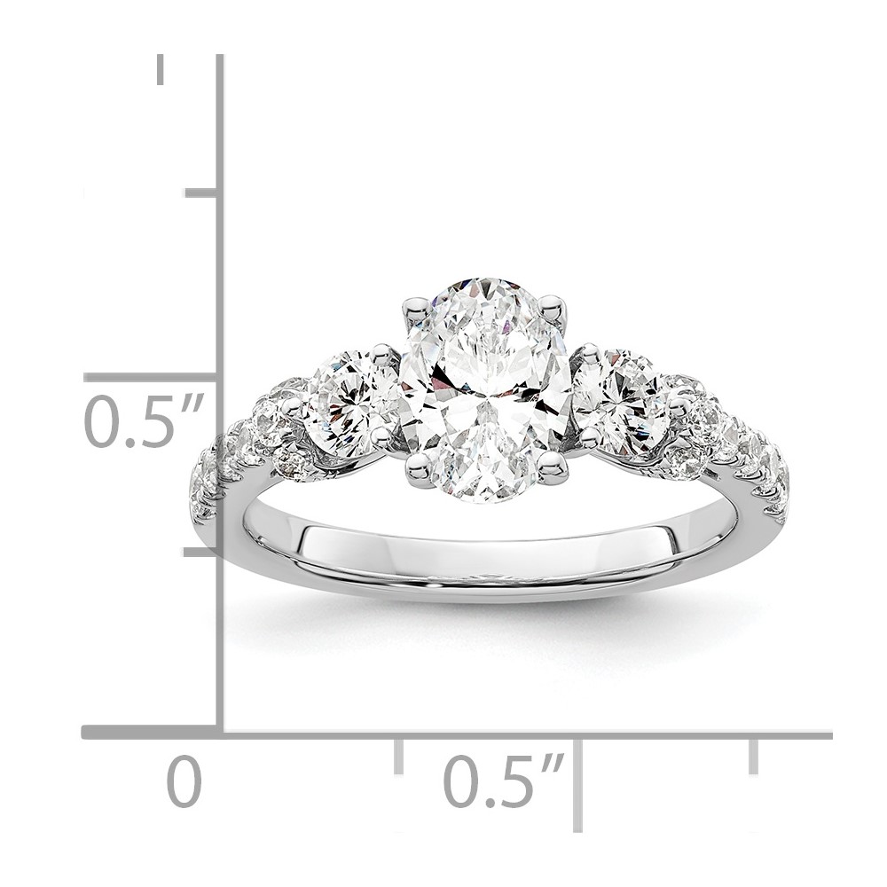 14k White Gold 3/4 carat Lab Grown Diamond VS/SI+ G+ 1 carat Center Oval Semi Mount Engagement Ring
