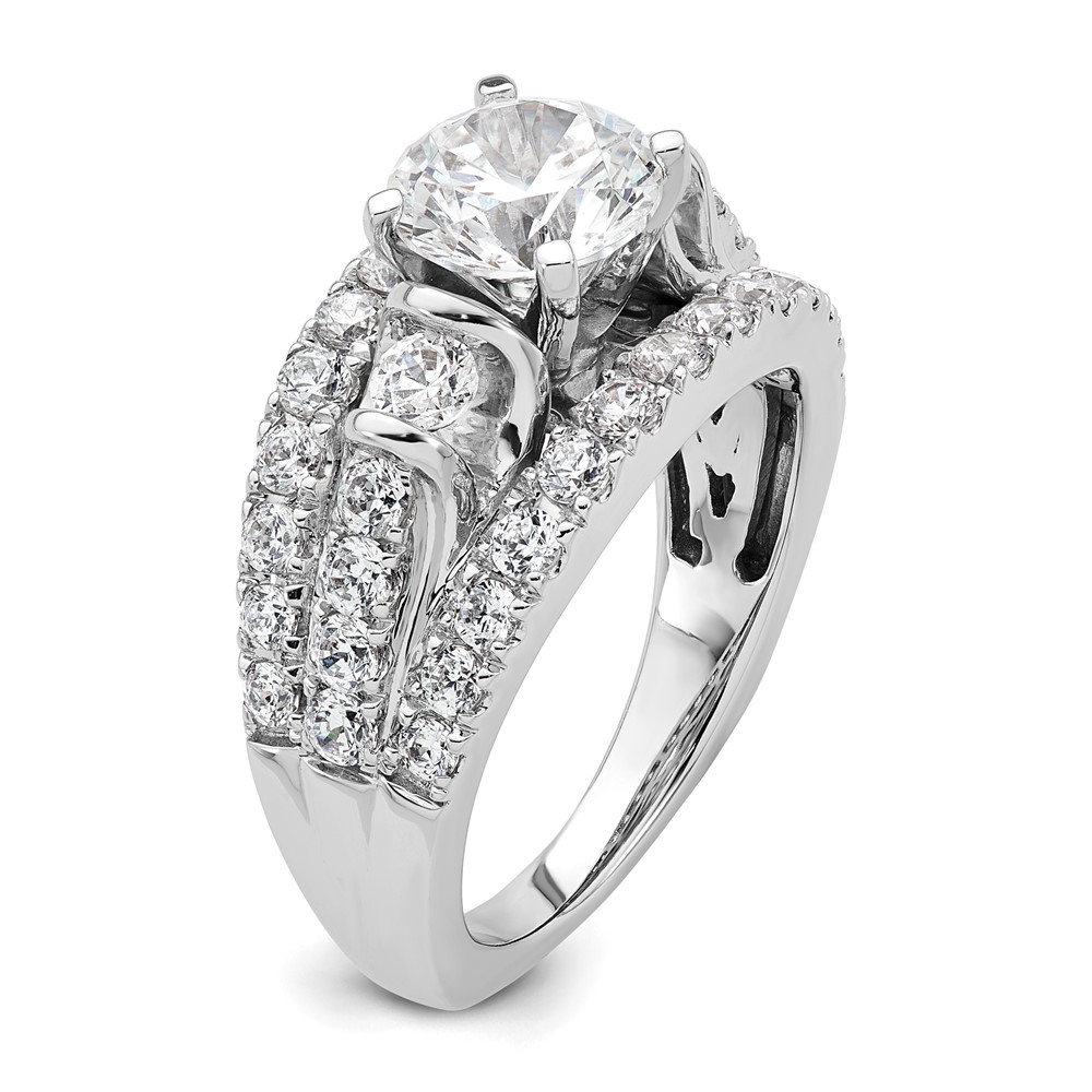 14k White Gold 1 3/8 carat Lab Grown Diamond VS/SI+ G+ 1 1/2 carat Center Round Semi Mount Shared Prong Engagement Ring