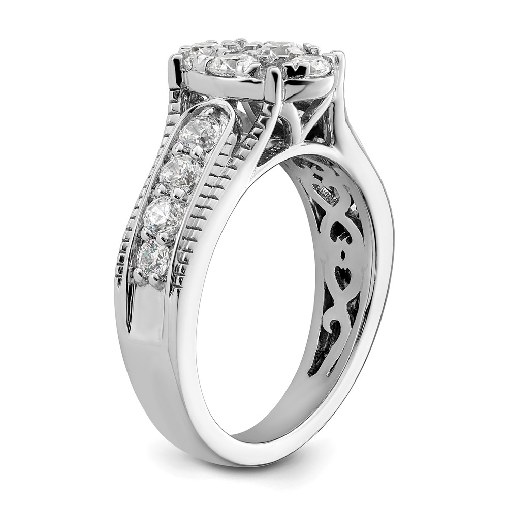 14k White Gold 1 carat Lab Grown Diamond VS/SI+ G+ Complete Cluster Engagement Ring