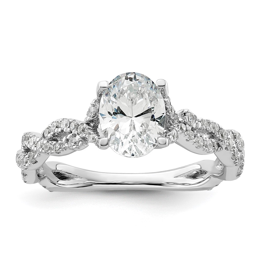 14k White Gold 3/8 carat Lab Grown Diamond VS/SI+ G+ 1 carat Center Oval Semi Mount Engagement Ring