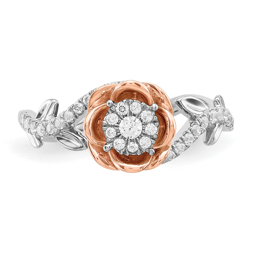 14k Two-Tone Rose and White Gold 1/4 carat Lab Grown Diamond VS/SI+ G+ Complete Flower Ring