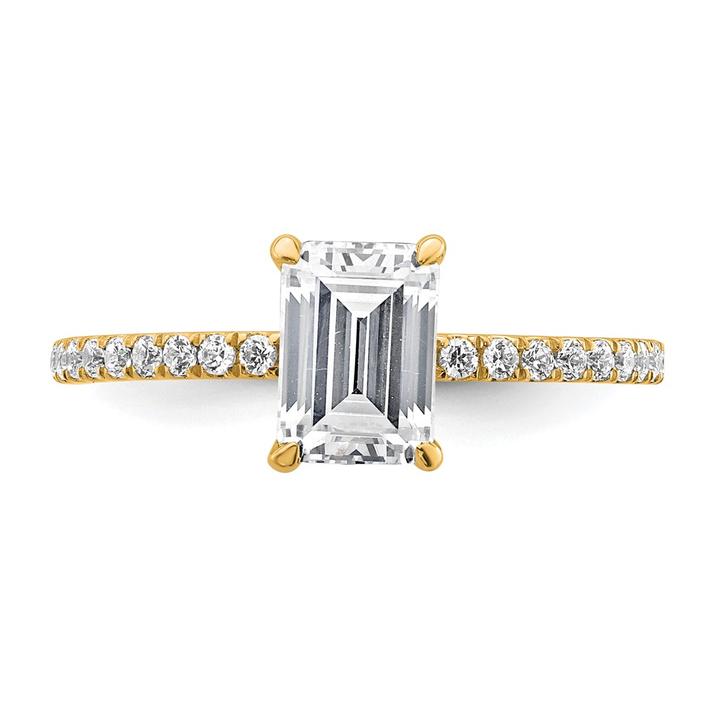 14k 1 3/8 carat Certified Lab Grown Diamond VS/SI+ G+ Emerald Complete Solitaire with Flair Engagement Ring
