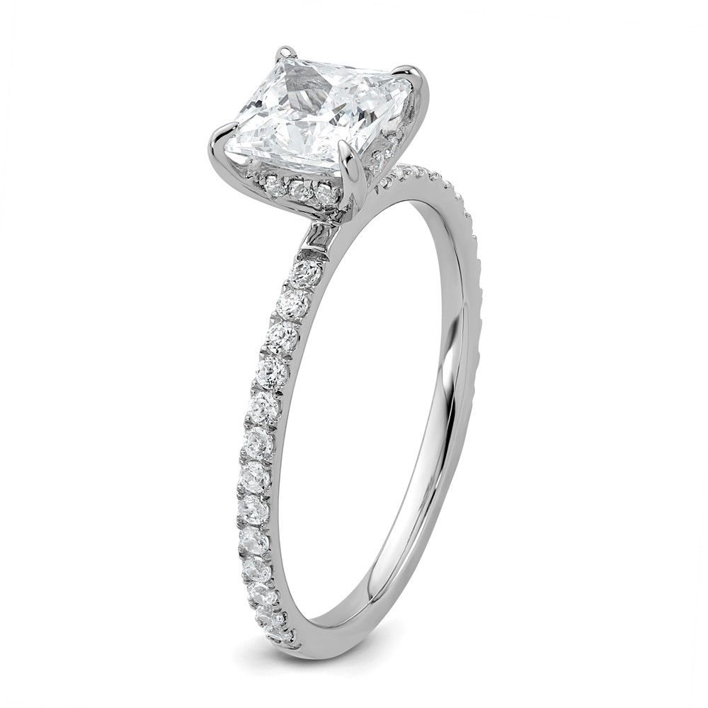 14k White Gold 1 3/8 carat Certified Lab Grown Diamond VS/SI+ G+ Princess Complete Solitaire with Flair Engagement Ring
