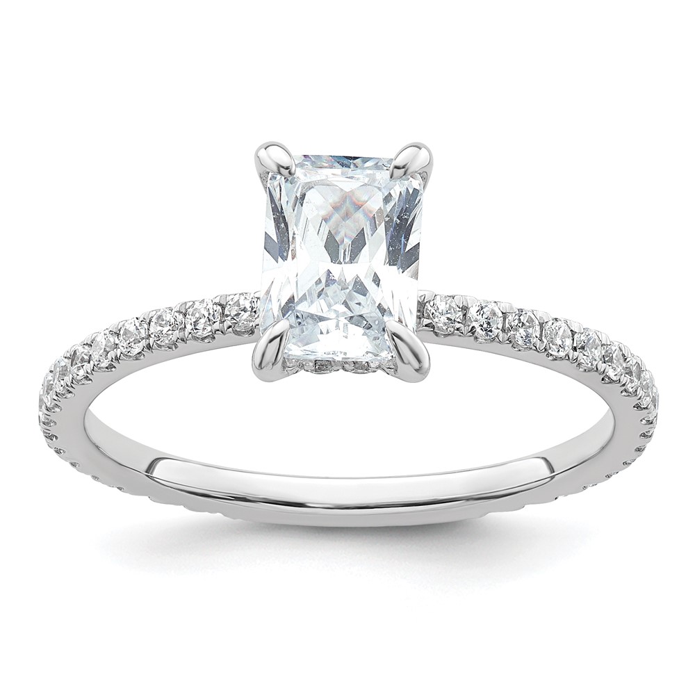 14k White Gold 1 1/3 carat Certified Lab Grown Diamond VS/SI+ G+ Radiant Complete Solitaire with Flair Engagement Ring