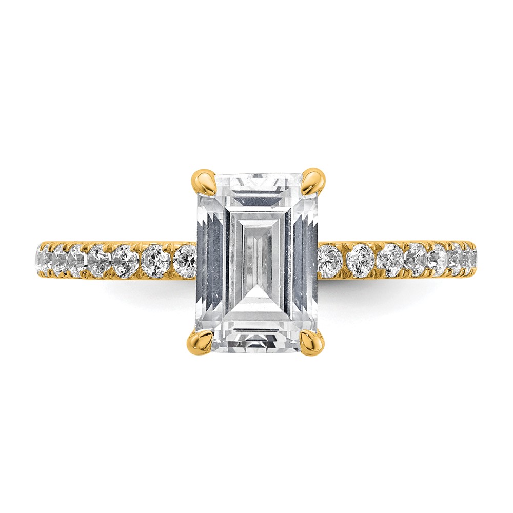 14k 2 carat Certified Lab Grown Diamond VS/SI+ G+ Emerald Complete Solitaire with Flair Engagement Ring