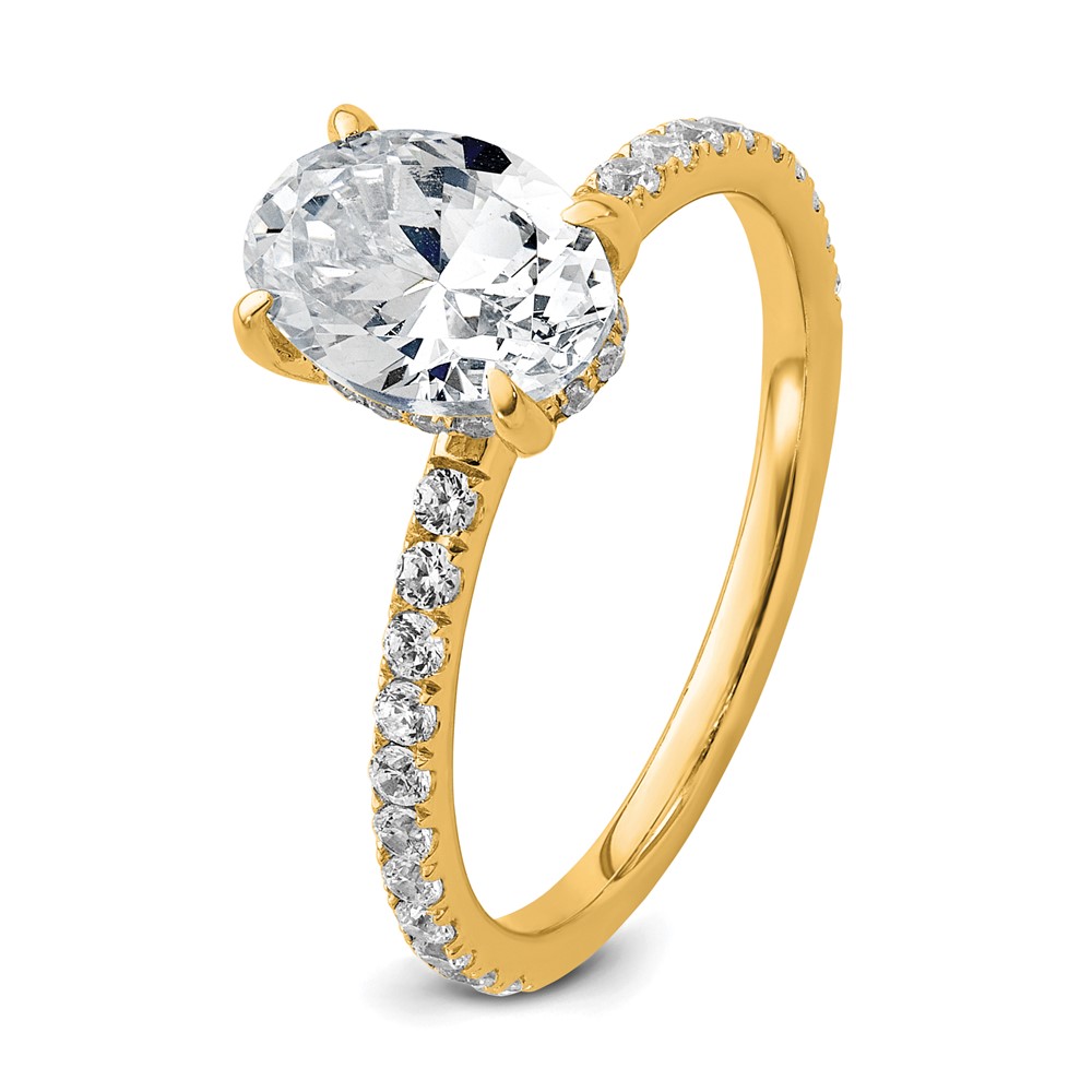 14k 1 7/8 carat Certified Lab Grown Diamond VS/SI+ G+ Oval Complete Solitaire with Flair Engagement Ring