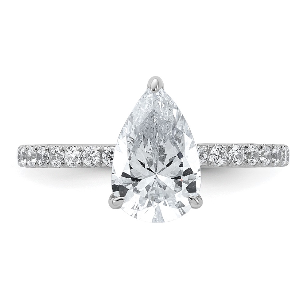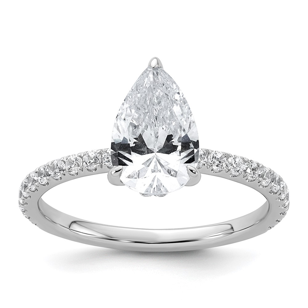 14k White Gold 2 carat Certified Lab Grown Diamond VS/SI+ G+ Pear Complete Solitaire with Flair Engagement Ring