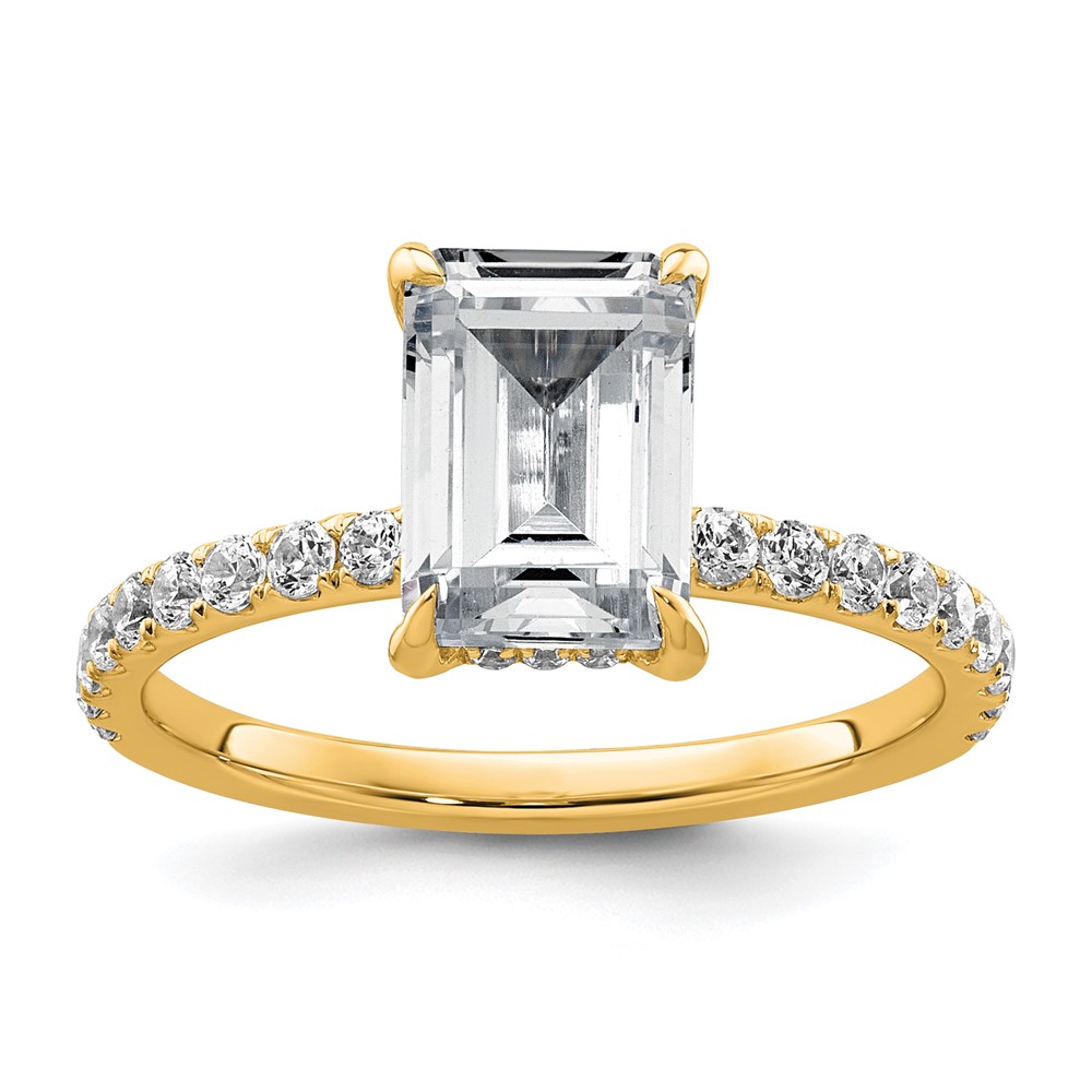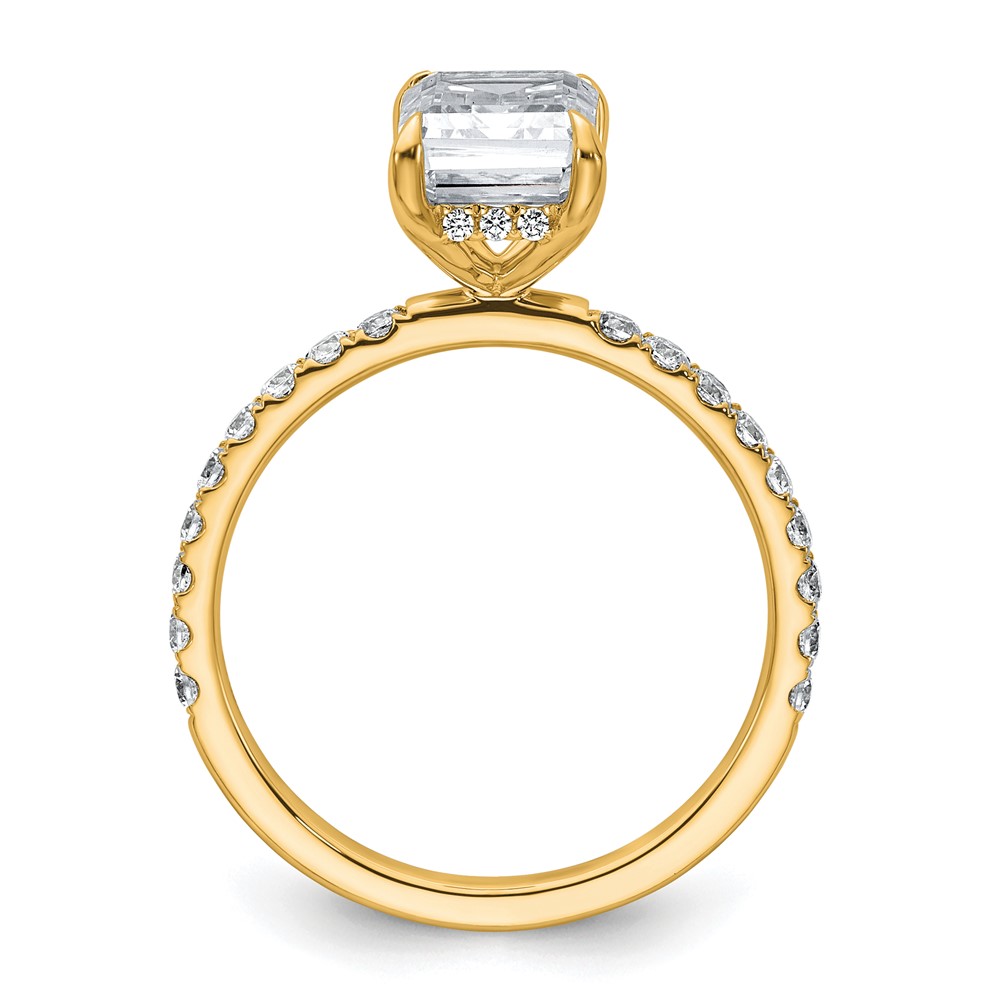 14k 2 3/8 carat Certified Lab Grown Diamond VS/SI+ G+ Emerald Complete Solitaire with Flair Engagement Ring