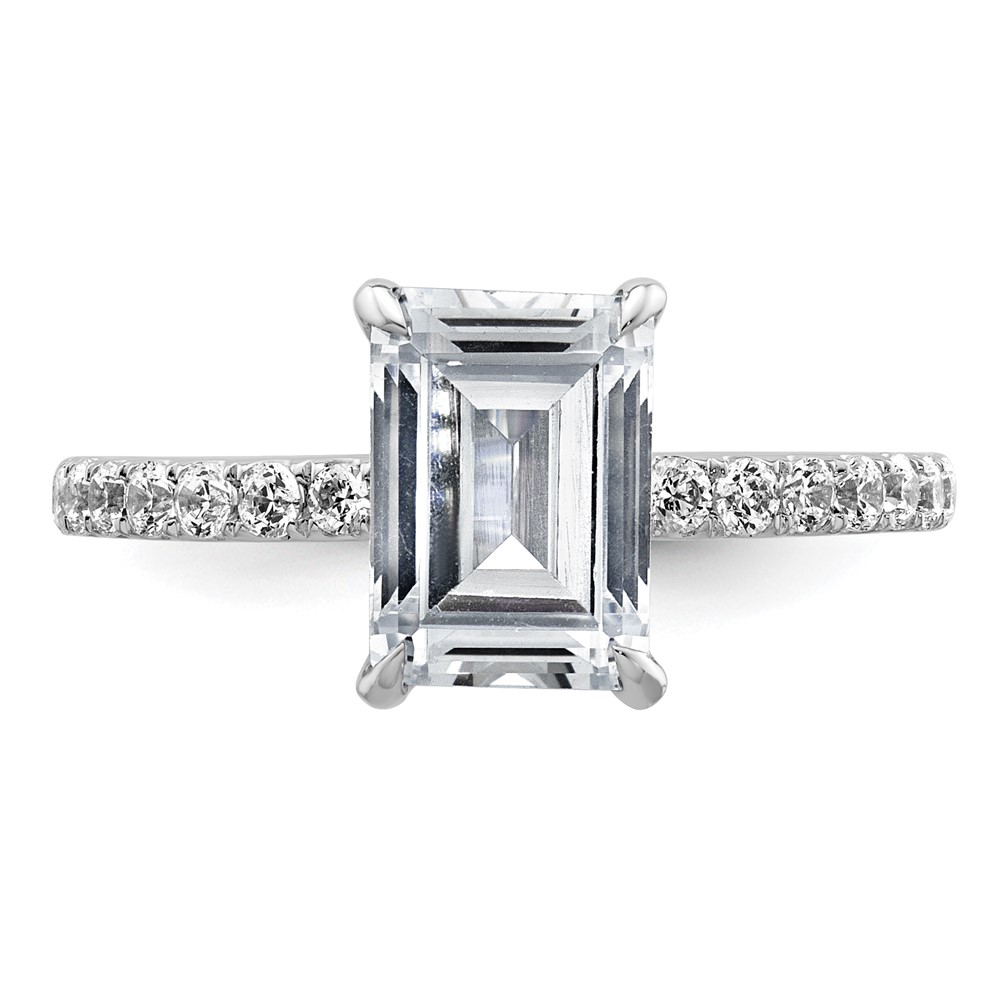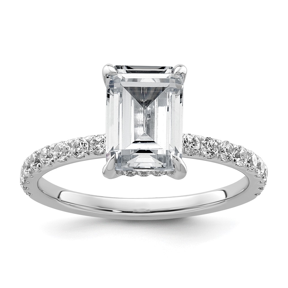 14k White Gold 2 3/8 carat Certified Lab Grown Diamond VS/SI+ G+ Emerald Complete Solitaire with Flair Engagement Ring
