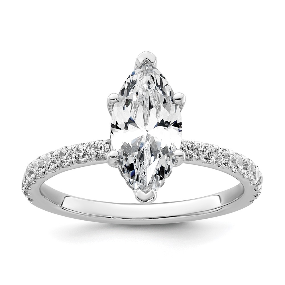 14k White Gold 2 5/8 carat Certified Lab Grown Diamond VS/SI+ G+ Marquise Complete Solitaire with Flair Engagement Ring