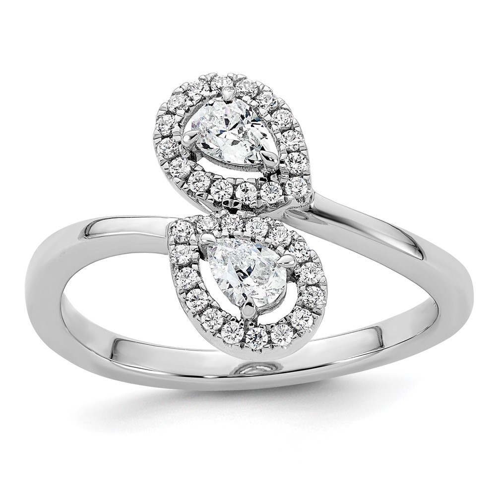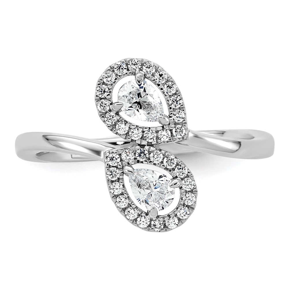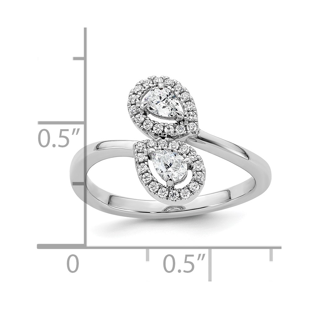 14K White Gold Polished 3/8 carat Diamond Pear Halo Bypass Ring