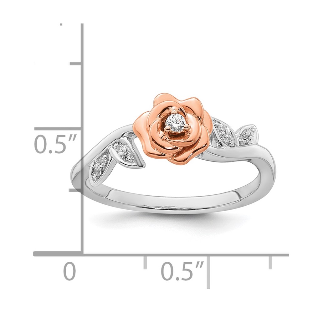 14k Two-tone Complete Diamond Rose With Leaves Promise Ring