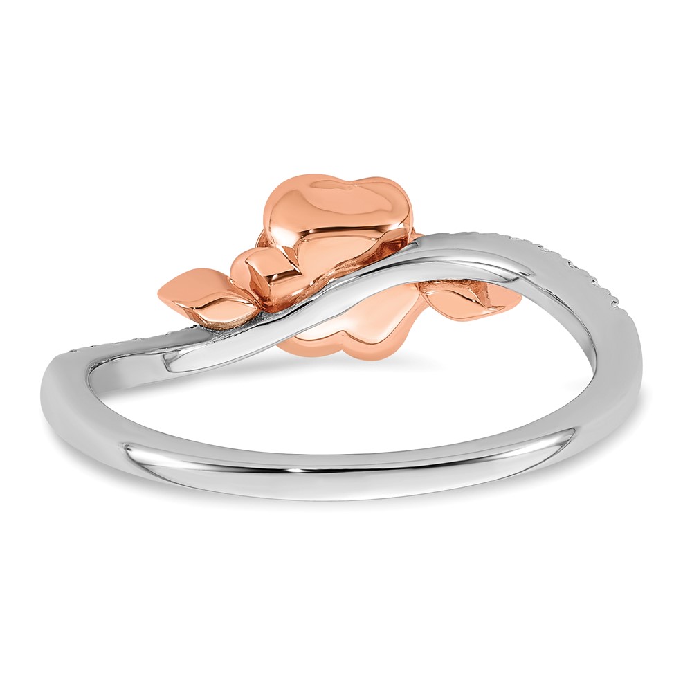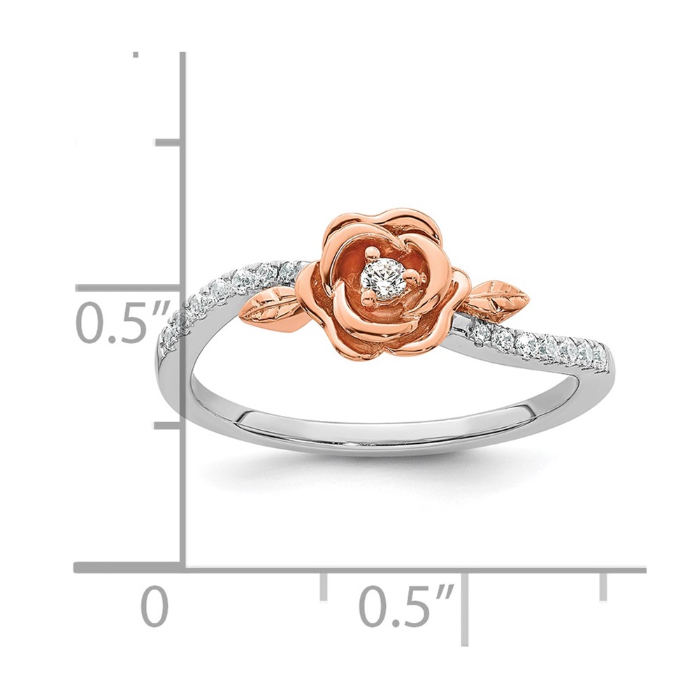 14k Two-tone Complete Diamond Rose With Leaves Promise Ring