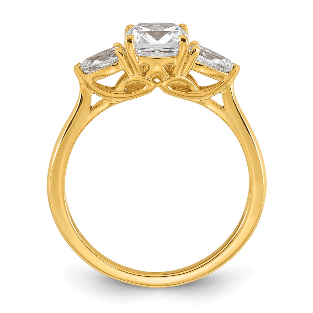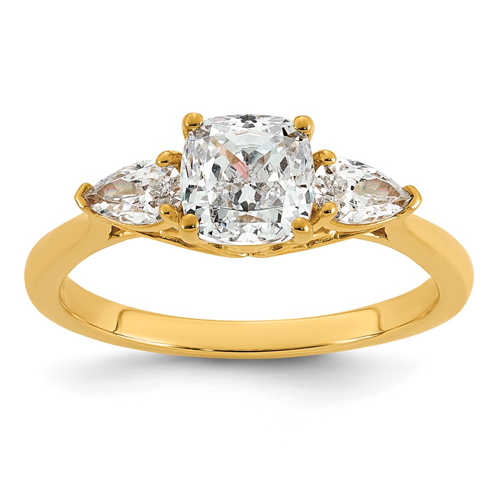 Gold Diamond Cushion and Pear 3-Stone Bridal Rings