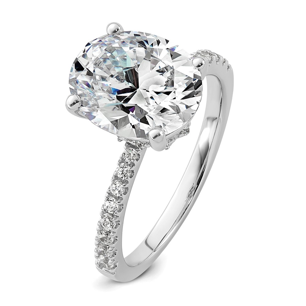 14k White Gold 3 1/4 carat Lab Grown Diamond VS/SI+ G+ Oval Complete Solitaire Engagement Ring