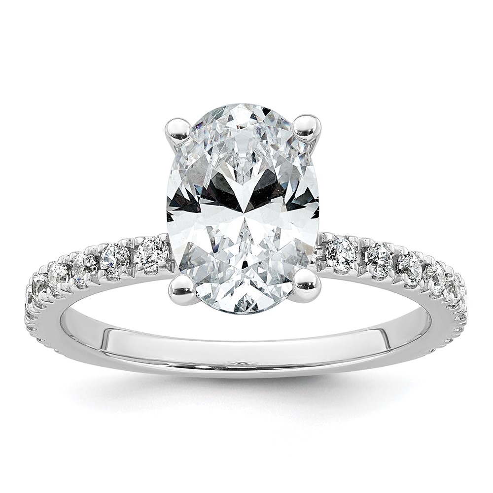 14k White Gold 2 1/3 carat Lab Grown Diamond VS+ F+ Oval Complete Shared Prong Engagement Ring