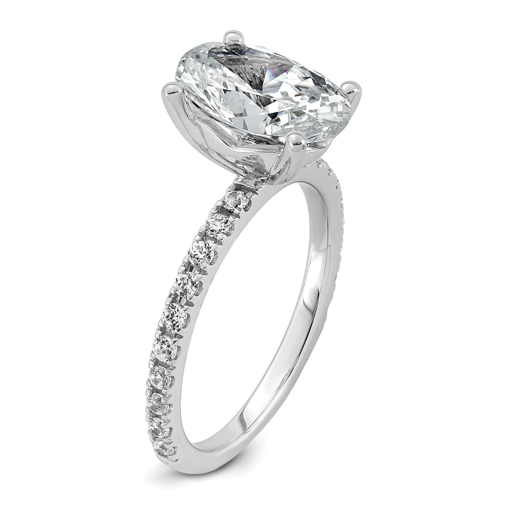 14k White Gold 3 3/8 carat Certified Lab Grown Diamond VS+ F+ Oval Complete Shared Prong Engagement Ring