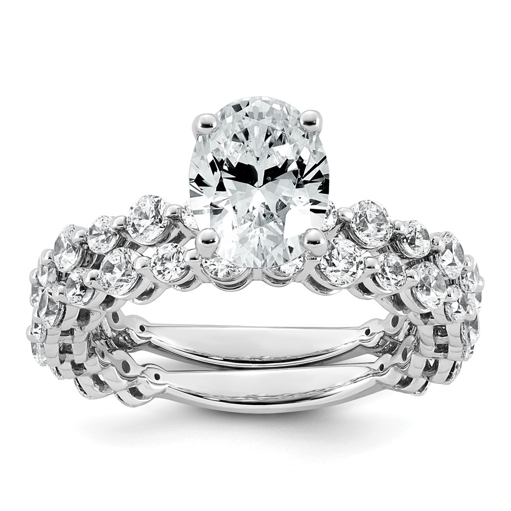 14k White Gold 2 1/3 carat Lab Grown Diamond VS+ F+ Oval Complete Shared Prong Engagement Ring