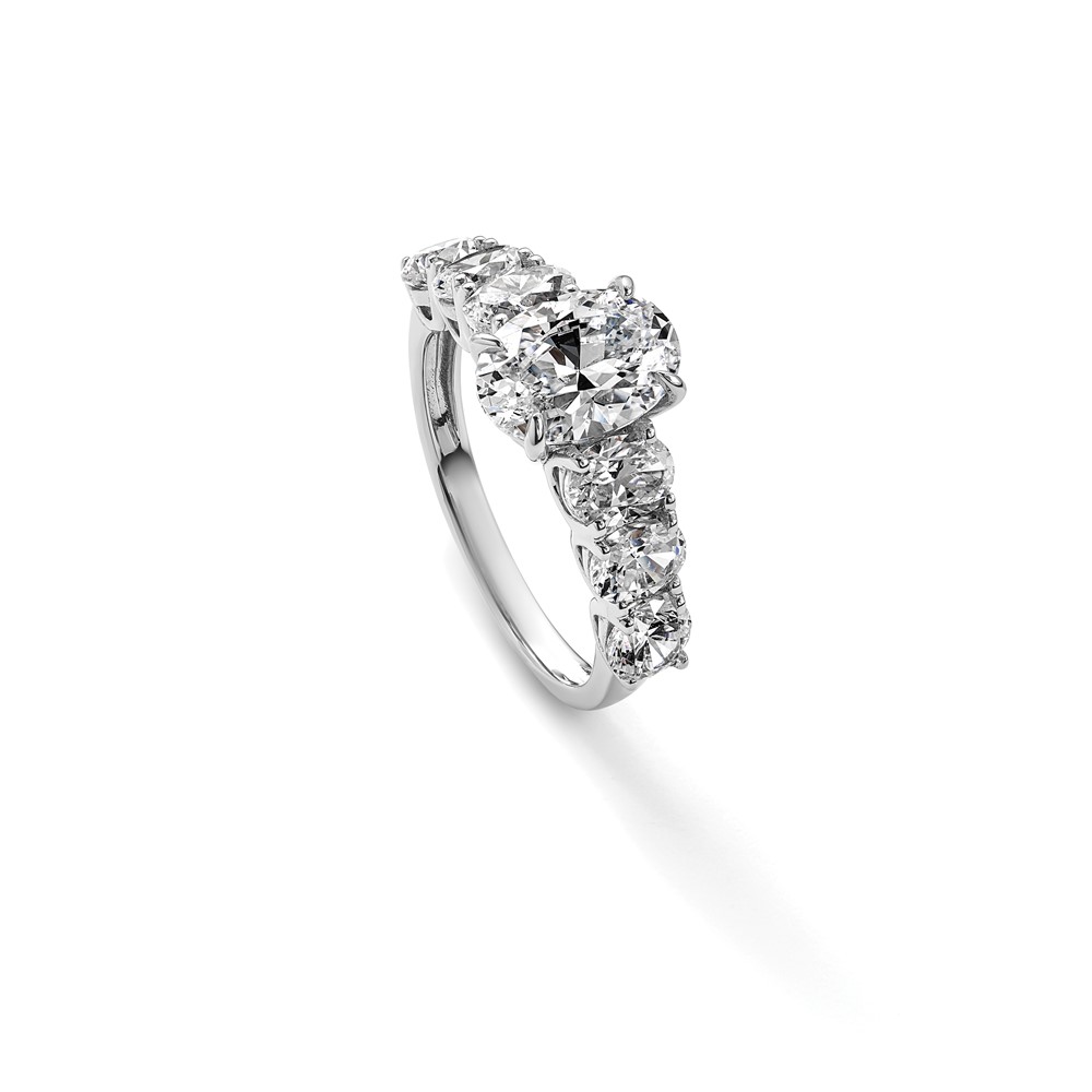 14k White Gold 3 7/8 carat Certified Lab Grown Diamond VS+ F+ Oval Complete Engagement Ring