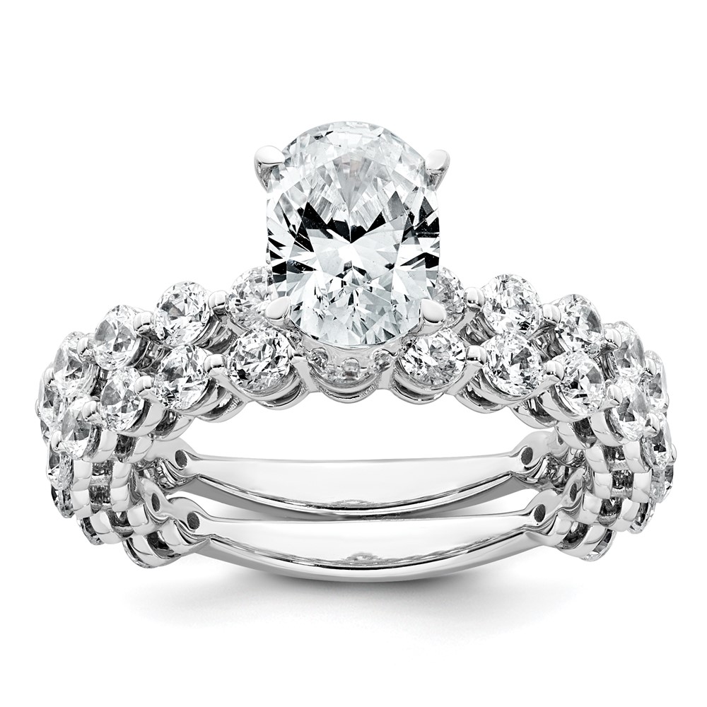 14k White Gold 2 5/8 carat Certified Lab Grown Diamond VS+ F+ Oval Complete Engagement Ring