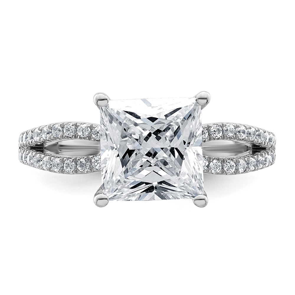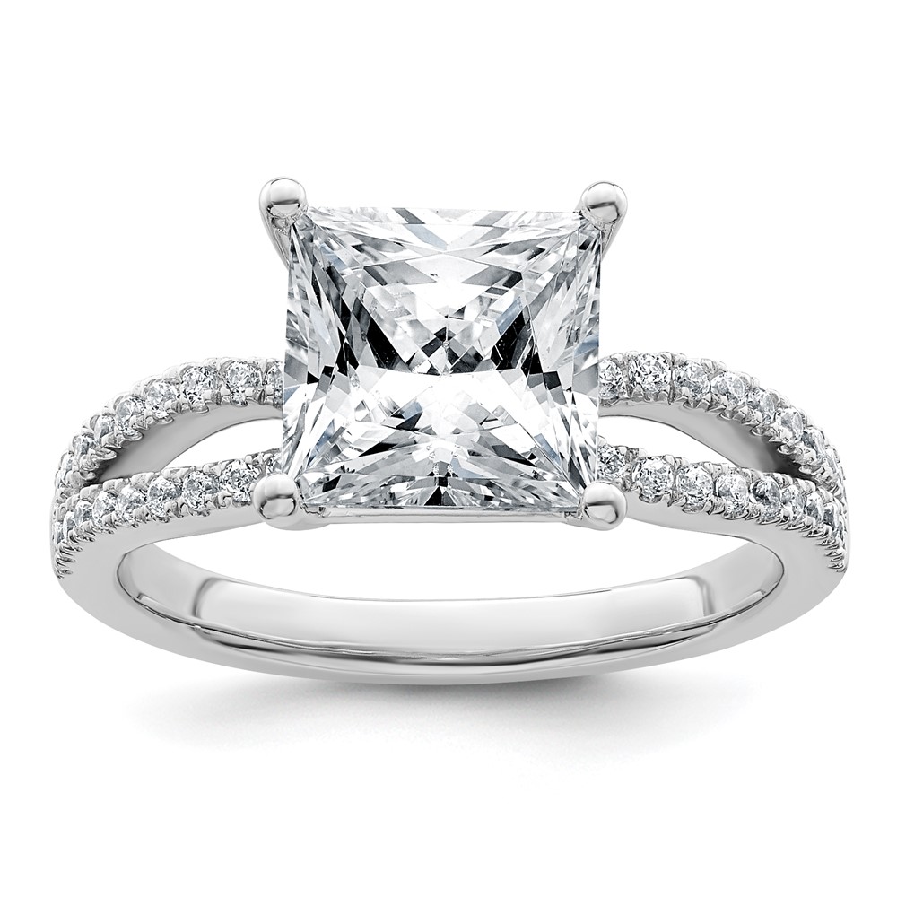 14k White Gold 2 3/4 carat Lab Grown Diamond VS+ F+ Princess Complete Engagement Ring
