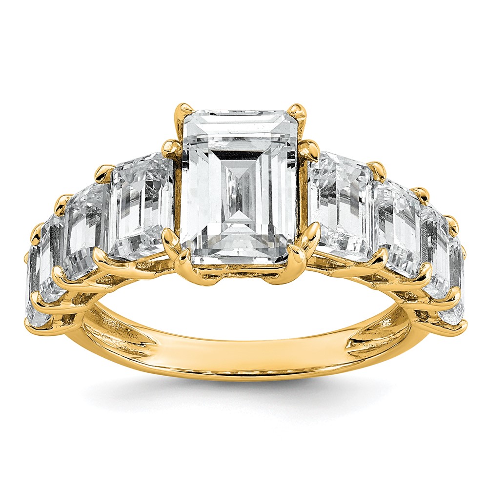 14k 5 carat Certified Lab Grown Diamond VS+ F+ Emerald Complete Shared Prong Engagement Ring