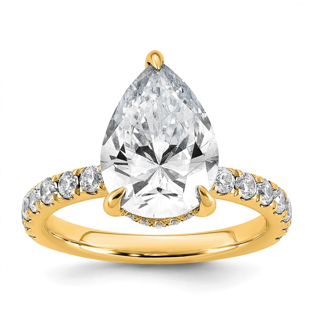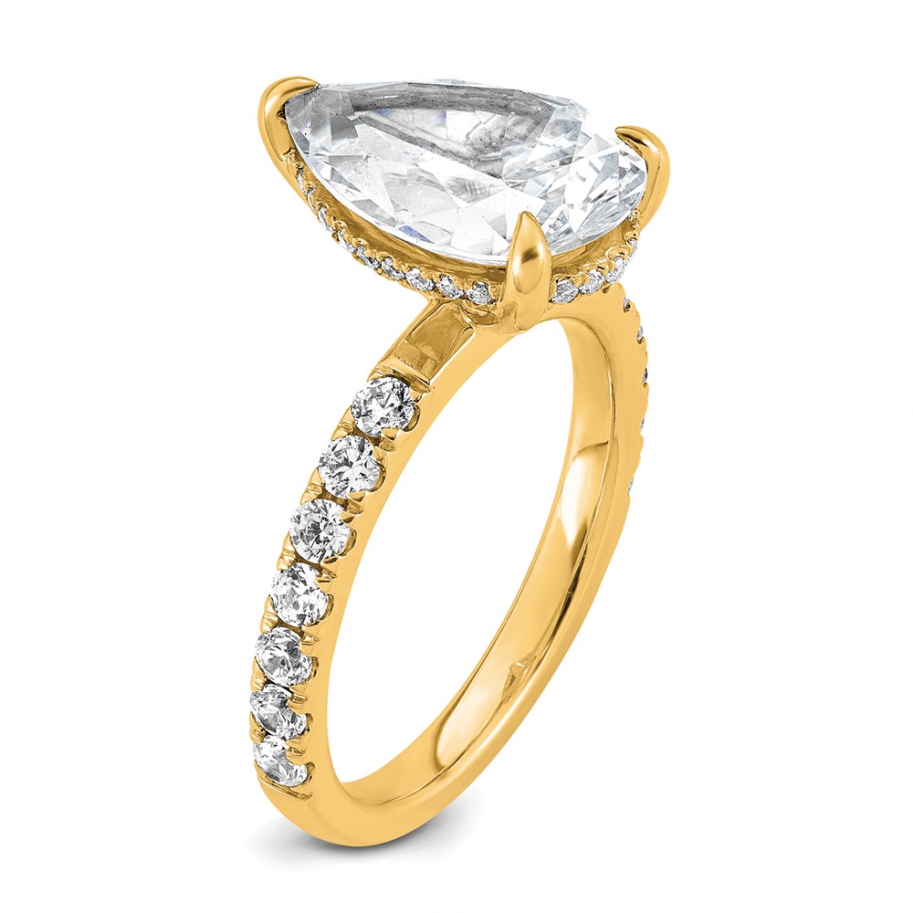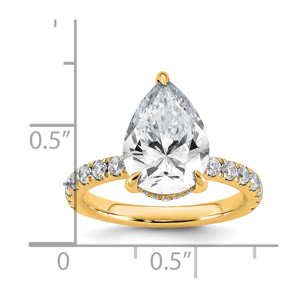 14k 4 3/4 carat Certified Lab Grown Diamond VS/SI+ G+ Pear Complete Solitaire with Flair Engagement Ring