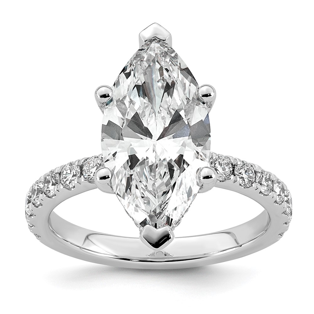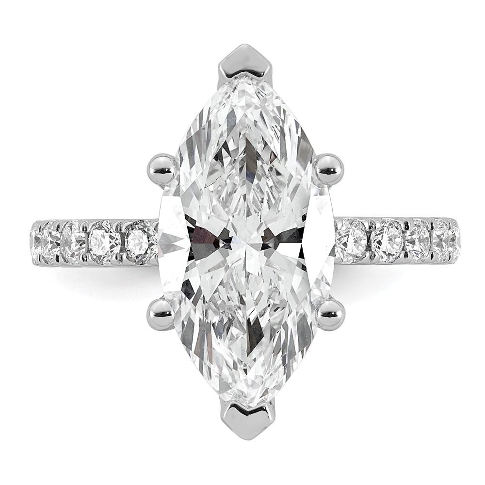 14k White Gold 4 5/8 carat Certified Lab Grown Diamond VS/SI+ G+ Marquise Complete Solitaire with Flair Engagement Ring