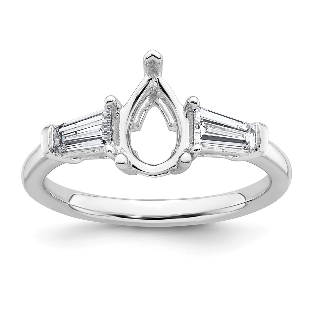 Gold Diamond Pearand Baguette 3-Stone Bridal Rings