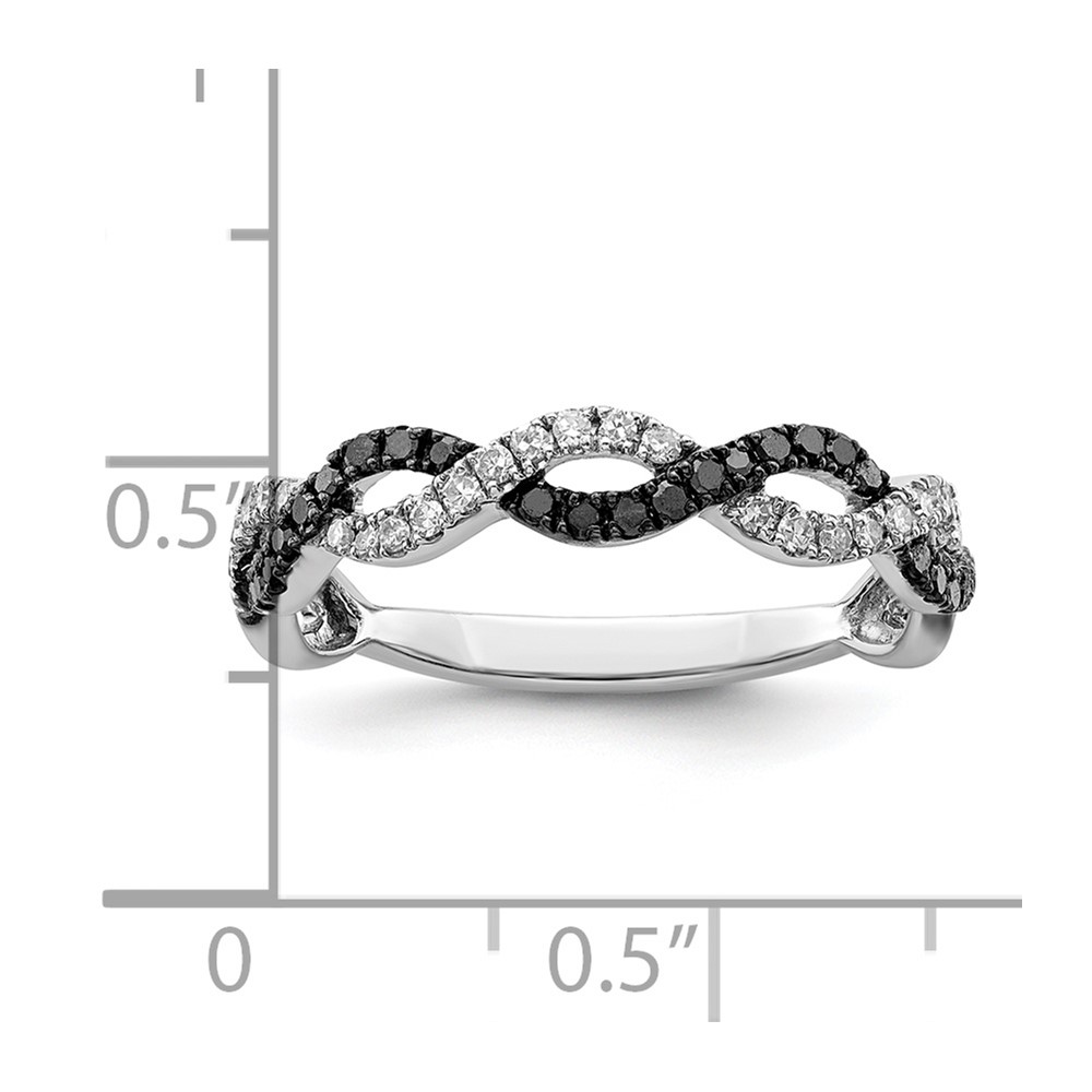 White Night Sterling Silver Rhodium-plated Black and White Criss Cross Diamond Ring