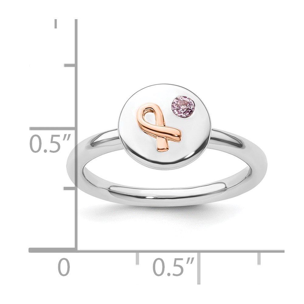 Sterling Silver Stackable Expressions 14k Rose Ribbon Pink Sapphire Ring