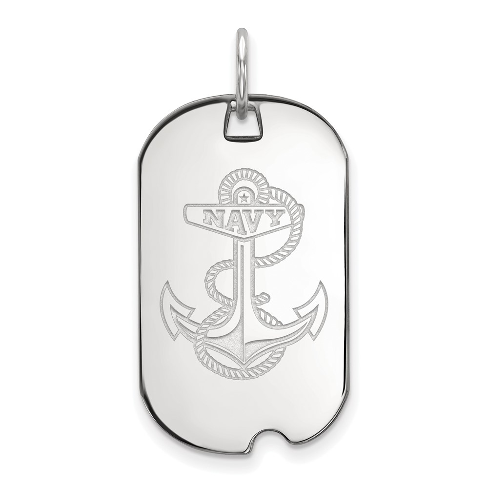 Sterling Silver Rhodium-plated LogoArt US Naval Academy Anchor Small Dog Tag Pendant