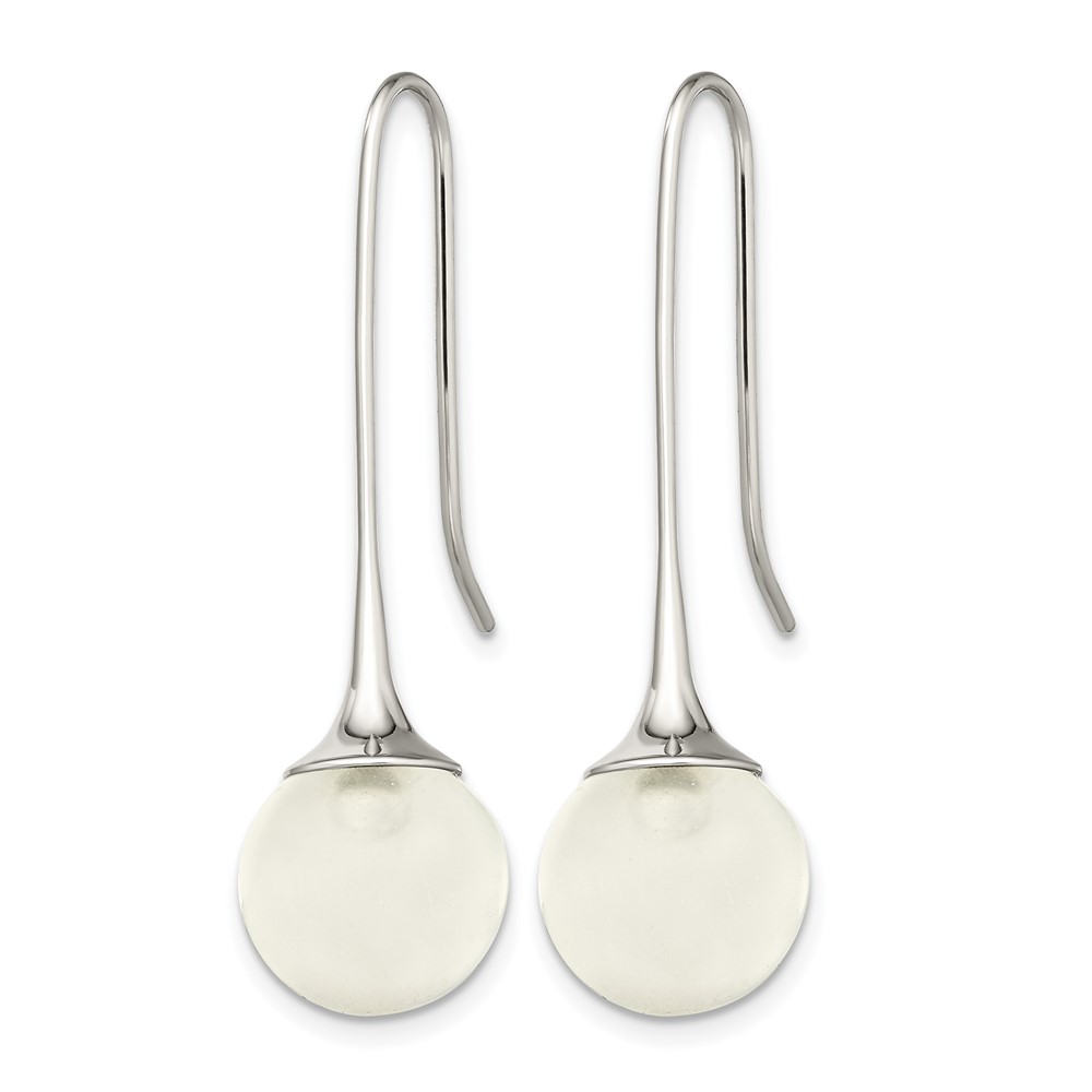 Chisel Stainless Steel Polished with Glass Ball Shepherd Hook Earrings