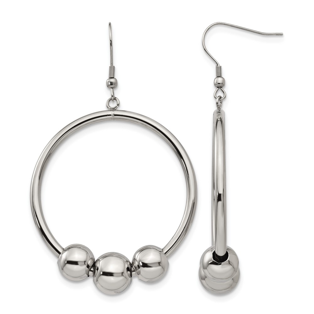 Stainless Steel Polished Dangle Shepherd Hook Earrings