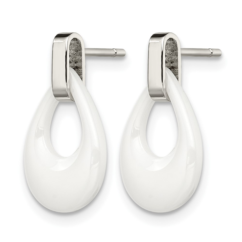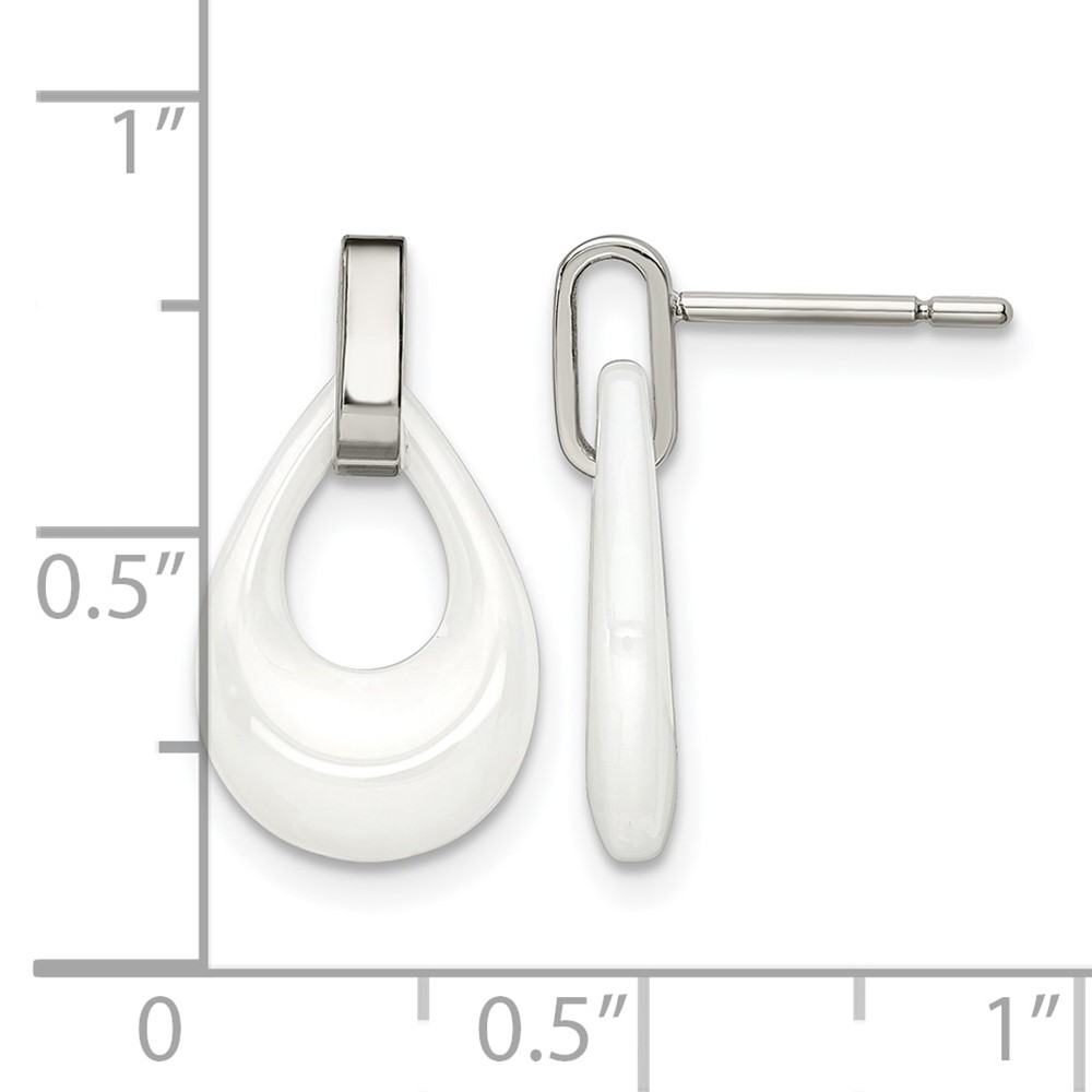 Chisel Stainless Steel Polished with White Ceramic Post Dangle Earrings
