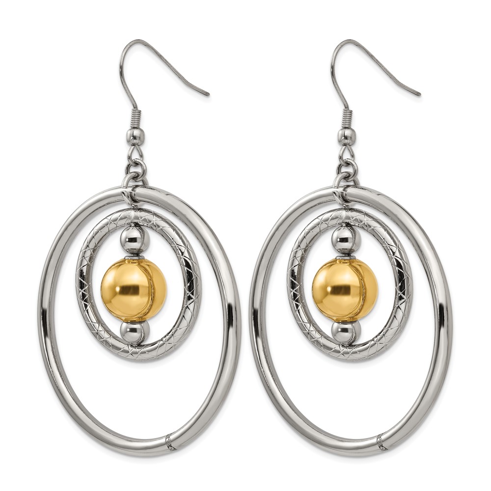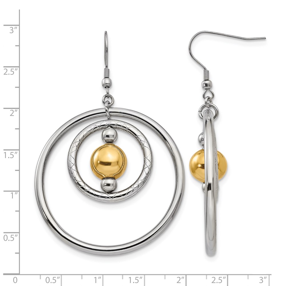 Stainless Steel Polished and Textured Yellow IP Shepherd Hook Earrings