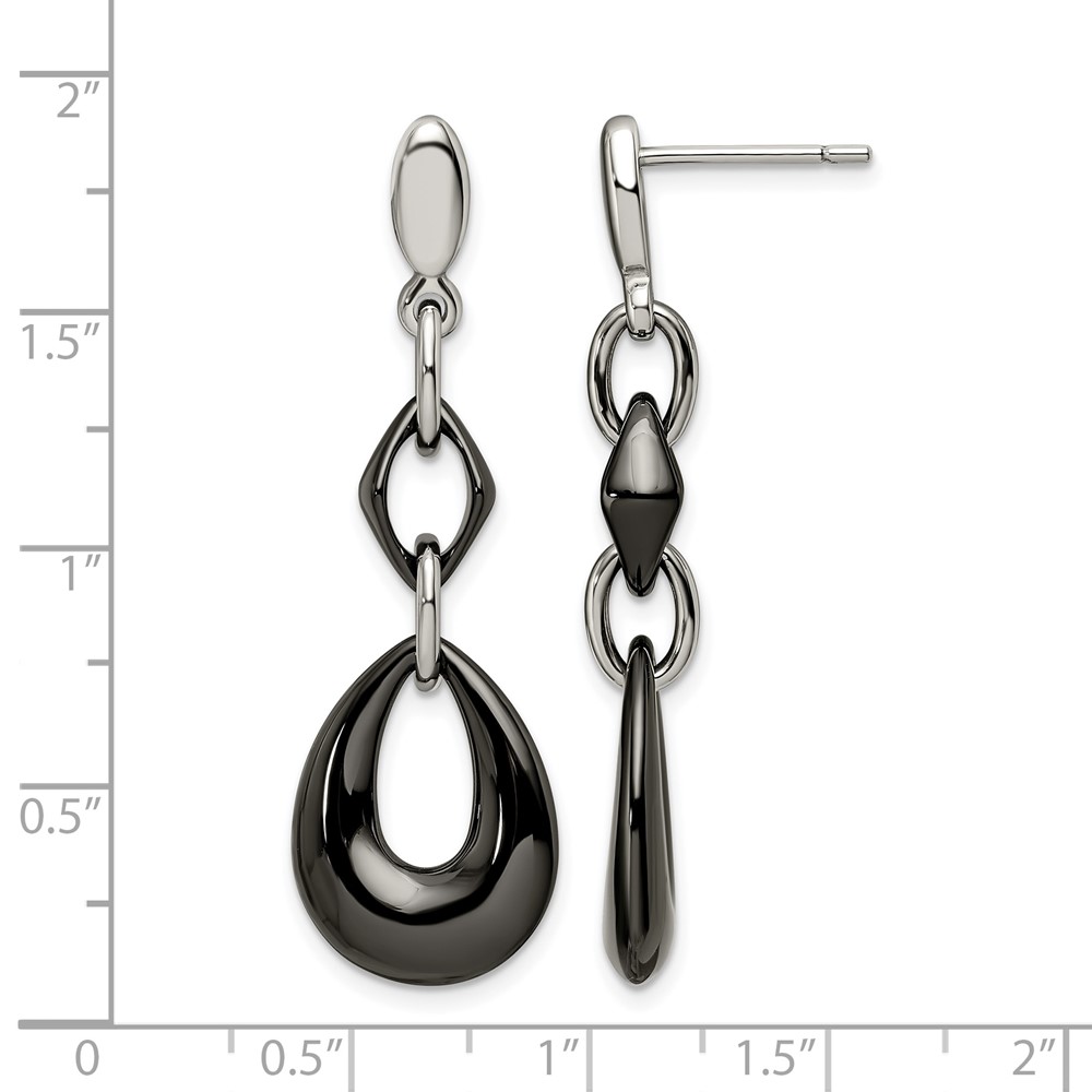 Chisel Stainless Steel Polished with Black Ceramic Post Dangle Earrings