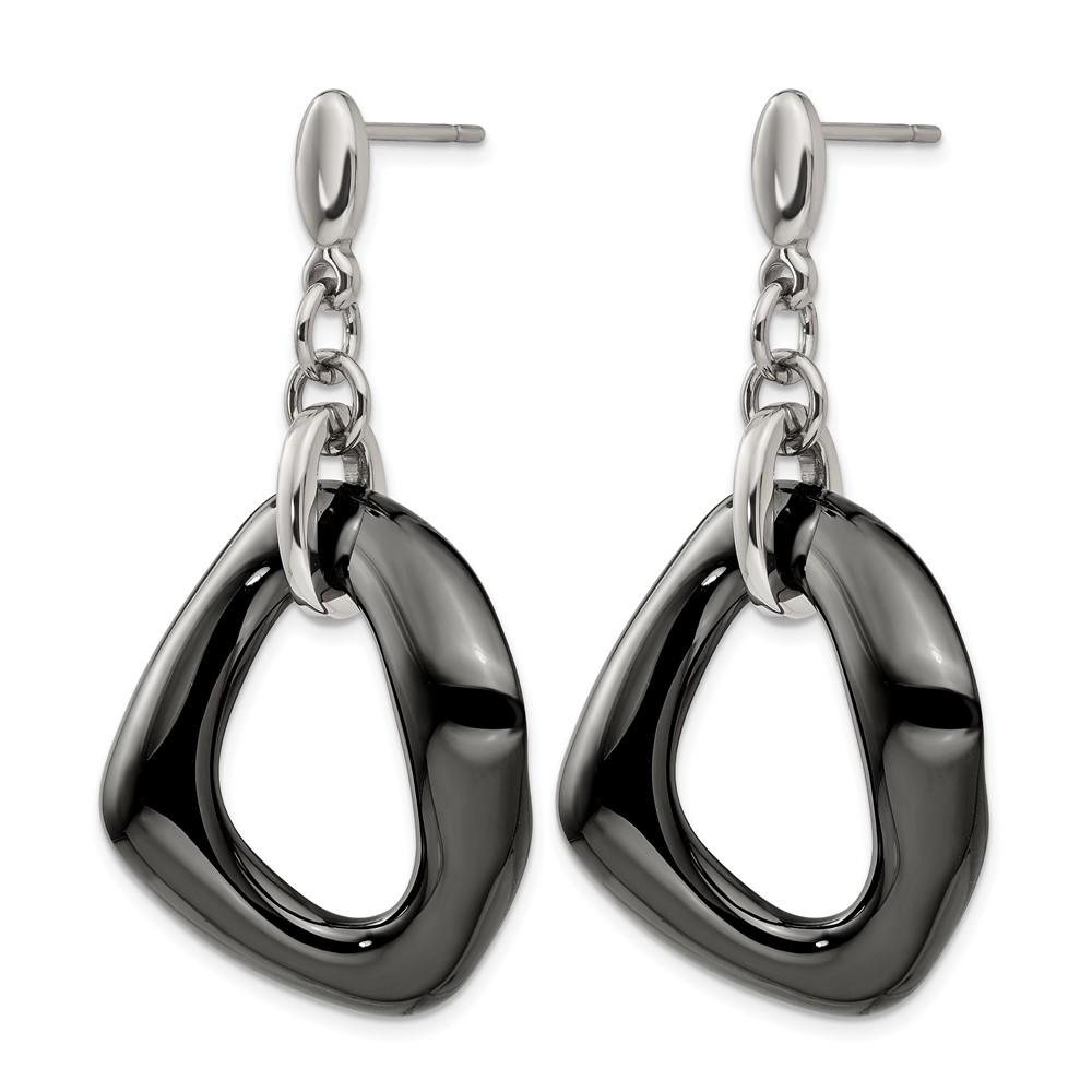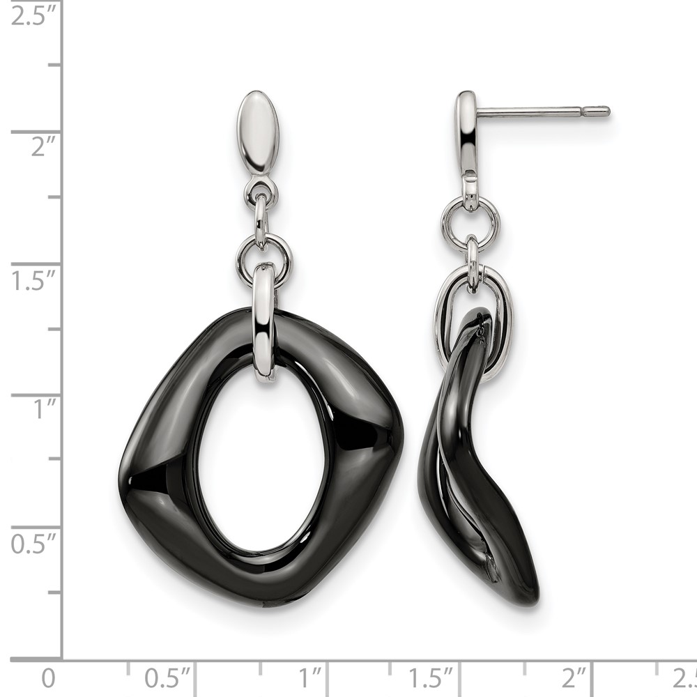Chisel Stainless Steel Polished with Black Ceramic Post Dangle Earrings